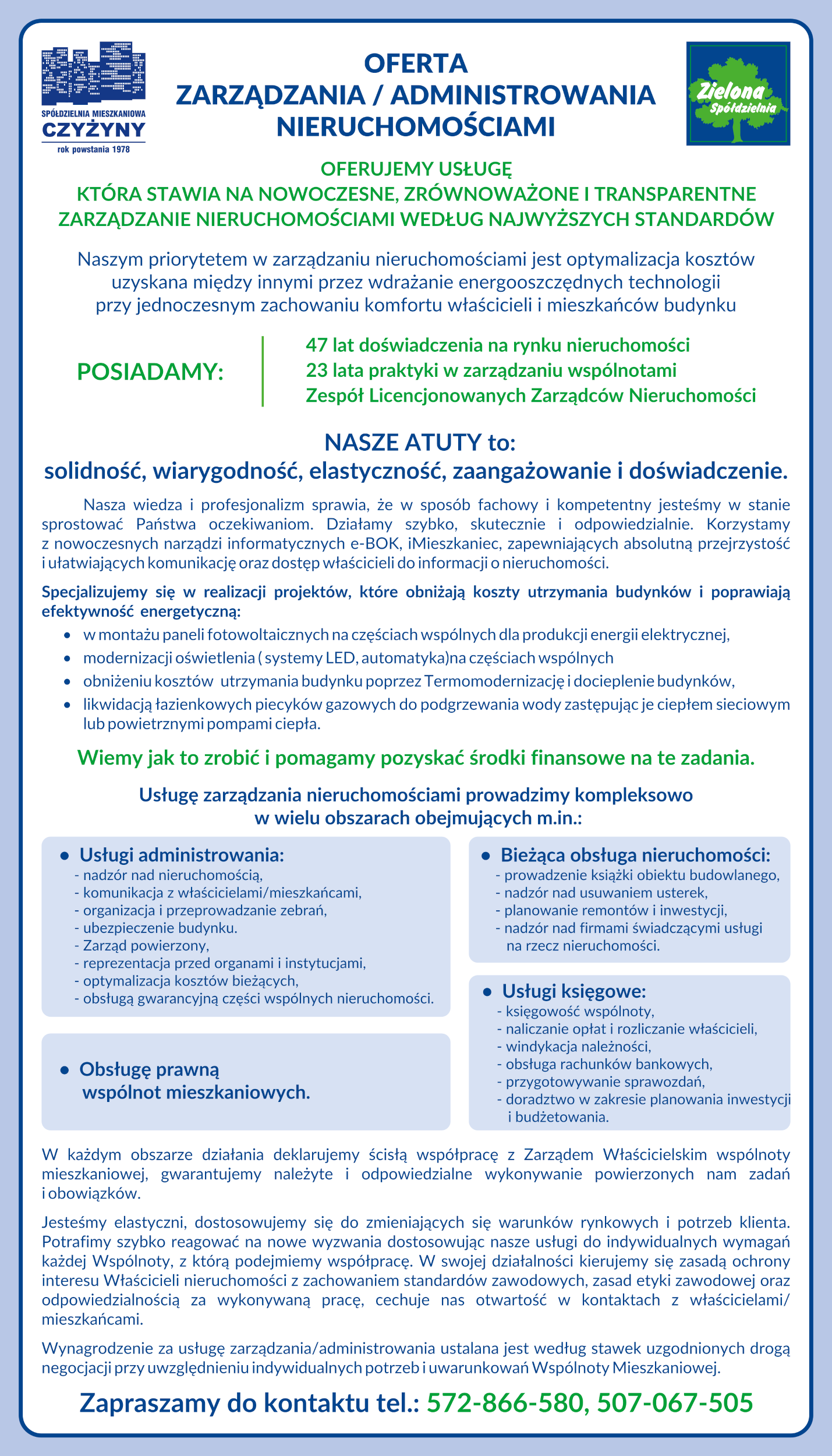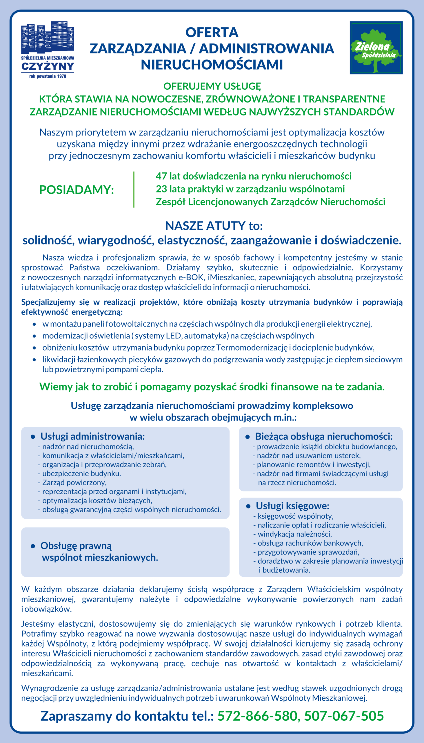 Oferta zarzadzania/administrowanie nieruchomościami